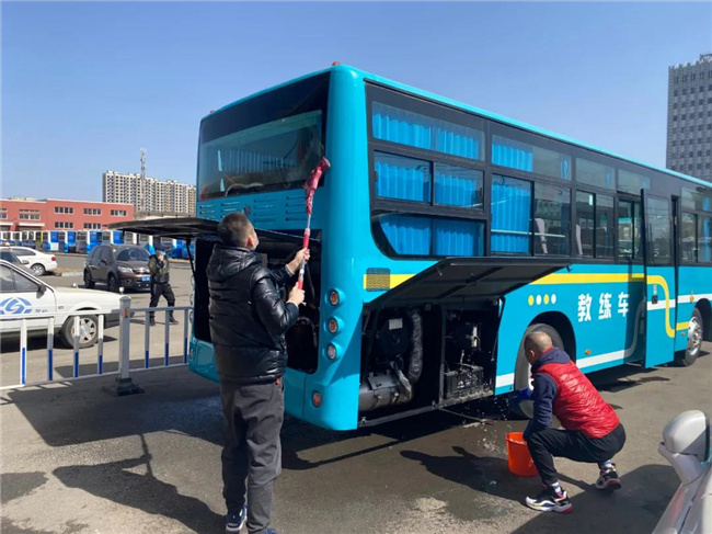 在學(xué)雷鋒活動中,技校組織職工擦拭教練車,更加優(yōu)化了學(xué)員的練車環(huán)境。