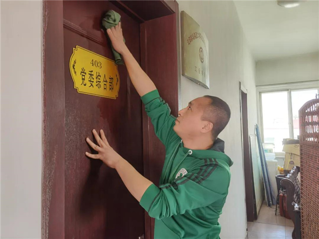 活動中,各黨員、青年積極清掃場區(qū)內(nèi)衛(wèi)生,掃落葉,擦玻璃,每個人都積極地投身到場區(qū)衛(wèi)生中,干的不亦樂乎,場區(qū)也因大家的付出變得煥然一新。