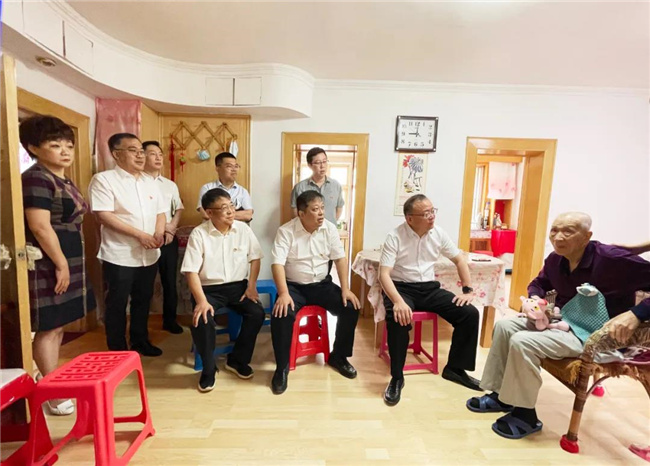 看到國(guó)資委主任及城投集團(tuán)總經(jīng)理親自上門(mén),李德春老人的愛(ài)人和女兒非常感動(dòng)。孫百如拉著老人的手,關(guān)切地詢問(wèn)他的生活起居、子女工作等情況,并了解到老人腿腳不便,需要常年雇人照顧老人起居生活。