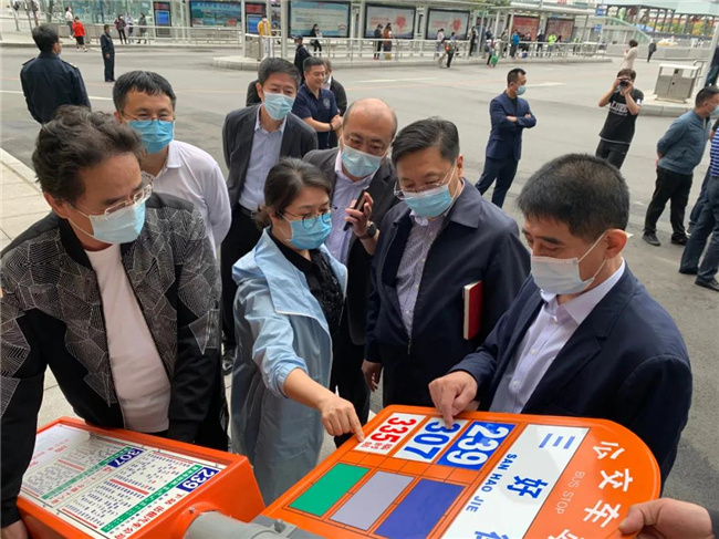 國慶節(jié)前夕,市交通運(yùn)輸局公交處處長高永宏、辦公室主任王笑春、執(zhí)法隊(duì)公交執(zhí)法大隊(duì)大隊(duì)長田豐柱、出租汽車執(zhí)法協(xié)調(diào)處處長王軍等一行來到沈陽客運(yùn)集團(tuán)北站公交樞紐站,檢查公交樞紐站的安全生產(chǎn)、疫情防控及國慶節(jié)期間公交運(yùn)營保障情況。