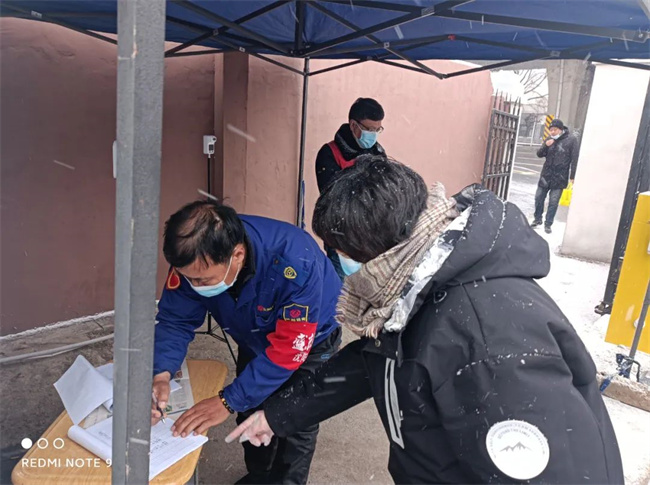 公司院內(nèi)有4家經(jīng)營單位,每天有200余輛同行單位的加氣人員需進出公司院內(nèi)進行加氣,為保證防控安全到位,公司及時排兵布陣,在20名機關干部被居家隔離的情況下,克服困難,成立機關志愿者防疫隊,公司領導黨員干部帶頭值崗,登記地點從辦公樓入口前移至公司場院入口,為進入場區(qū)人員登記、測溫、車輛消殺。寒風陣陣,志愿者們的身影一直在公司場區(qū)門口堅守著。