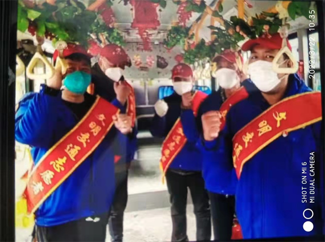 211路車輛按下了“暫停鍵”,但是線路不能停運。公司緊急從222路調(diào)配車輛人員進行支援,車隊組織222路黨員及積極分子臨時召開緊急會議,說明支援211路的任務。222路黨員、積極分子、骨干駕駛員們自告奮勇,積極報名,在車廂內(nèi)發(fā)出為211路出征加油的響亮承諾。一會兒功夫,一個支援211路的臨時應急小組就成立了。他們嚴格按照防疫要求,在做好自我保護的同時,對車輛進行仔細消毒,監(jiān)督乘客亮碼乘車,正確佩戴口罩,把車輛衛(wèi)生打掃得干干凈凈,踏上了支援保障之路。