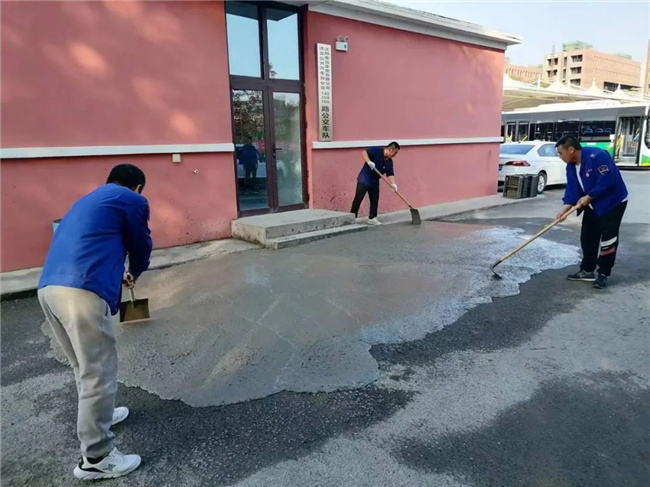 10月11日,沈蘇、鑫暢公司130路車隊開展“振興新突破,我要當(dāng)先鋒”活動,對場區(qū)南側(cè)的路面大坑進(jìn)行了清理及修復(fù)。