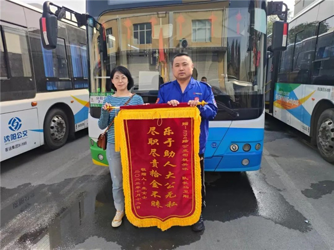 10月12日,乘客朱女士來到324路車隊(duì)送來一面印有“盡職盡責(zé)拾金不昧、樂于助人大公無私”字樣的錦旗,以表達(dá)自己的感激之情。