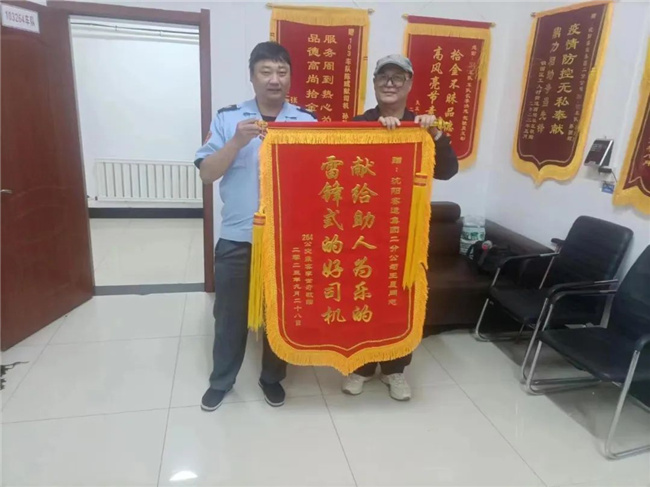10月8日下午,李世奇在愛人的陪同下來到264路車隊(duì),再次向王晨對(duì)自己的暖心幫助表達(dá)了謝意,并親手將自己精心準(zhǔn)備的錦旗送給了王晨。