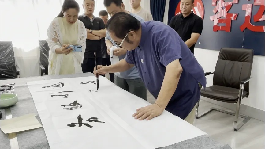 活動(dòng)中,單丹將自己創(chuàng)作的作品贈(zèng)送給駕駛員,單銳敏老師則現(xiàn)場(chǎng)揮毫潑墨,用書法表達(dá)美好祝福。
