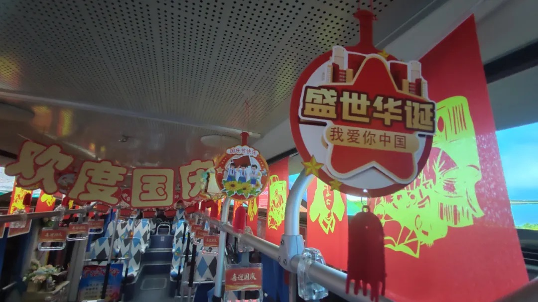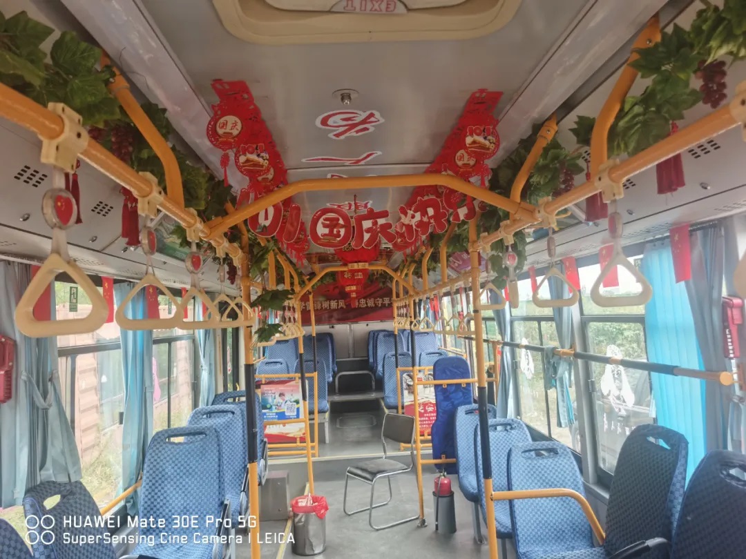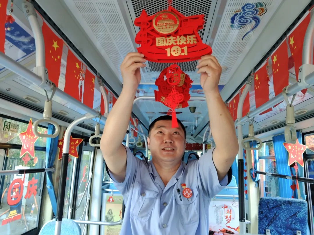 國(guó)慶前夕,駕駛員精心清潔車輛、裝扮車廂,處處洋溢著節(jié)日氣氛。