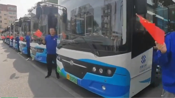 公交車組成“75”字樣,公交人以獨(dú)特方式抒發(fā)愛(ài)國(guó)情懷:
