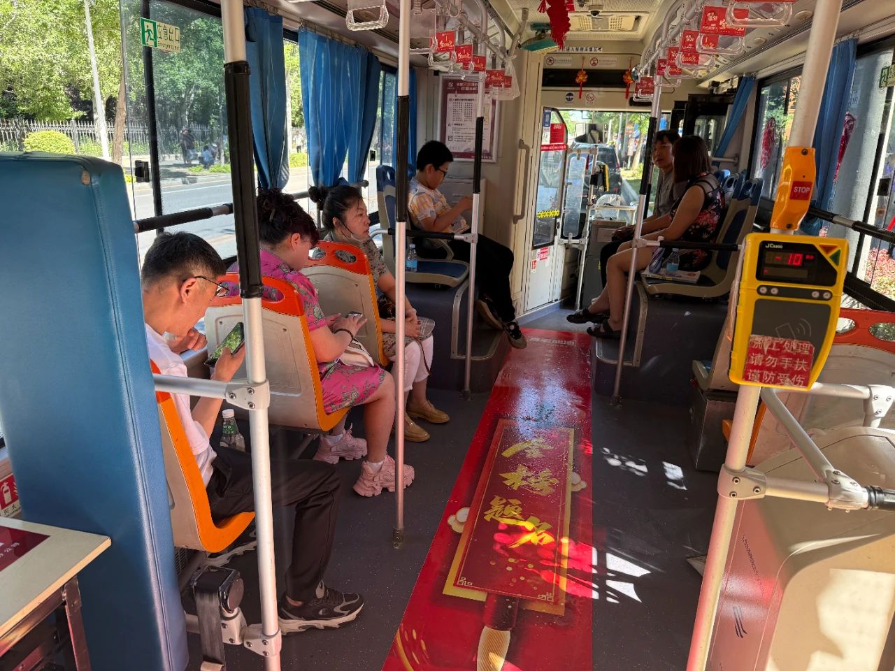 324路(沈蘇公司): 車廂地面鋪著“金榜題名”紅毯,在第三十中學考點為考生加油。