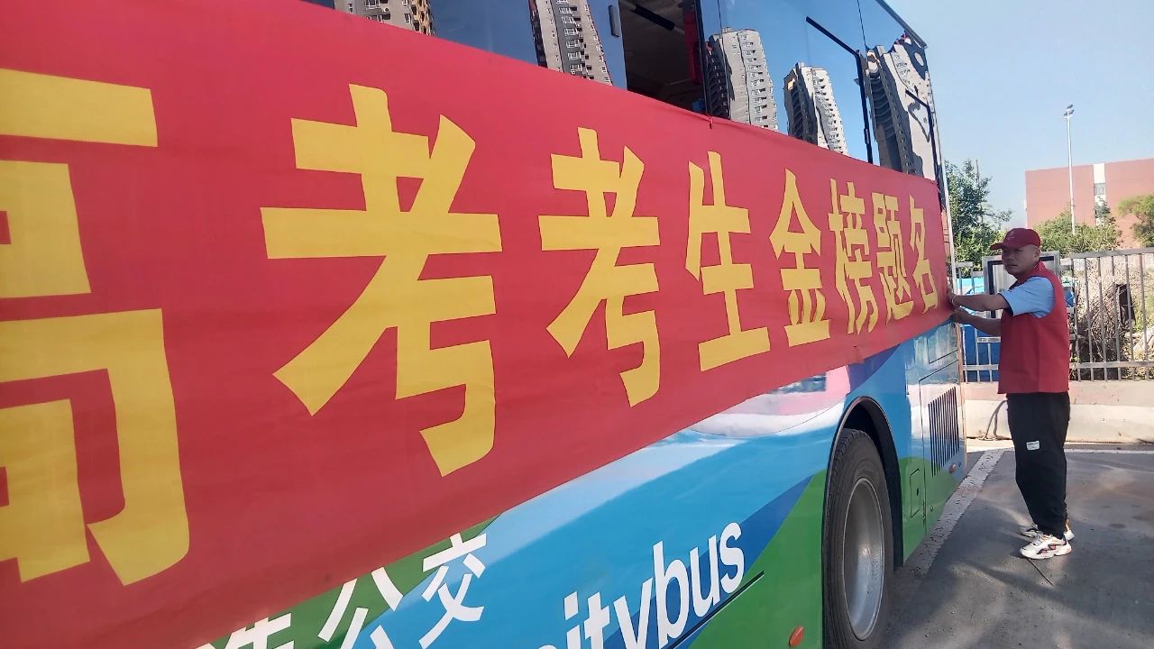 清晨7點,249路駕駛員王眾也已將車輛布置妥當。車內“金榜題名”標語醒目,“應急物資區(qū)”備有文具、口罩、風油精等物品。他還不時引導候考家長。
