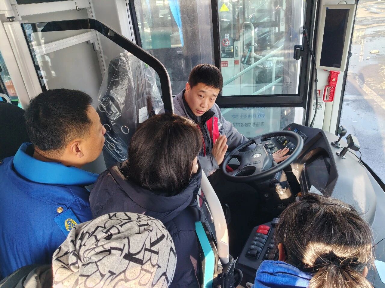培訓(xùn)中,主講人系統(tǒng)介紹了新投運(yùn)公交車輛的整體情況,并圍繞內(nèi)外設(shè)備、中控系統(tǒng)、動(dòng)力與制動(dòng)系統(tǒng)以及關(guān)鍵零部件等核心內(nèi)容,進(jìn)行了實(shí)地講解,幫助參訓(xùn)人員建立對(duì)新車型技術(shù)結(jié)構(gòu)及運(yùn)行特點(diǎn)的框架性認(rèn)知。針對(duì)新車技術(shù)狀態(tài),培訓(xùn)明確了相應(yīng)的維護(hù)保養(yǎng)標(biāo)準(zhǔn),詳細(xì)講解了運(yùn)營(yíng)前檢查要點(diǎn)、行車安全注意事項(xiàng)以及常見故障處理方法。
