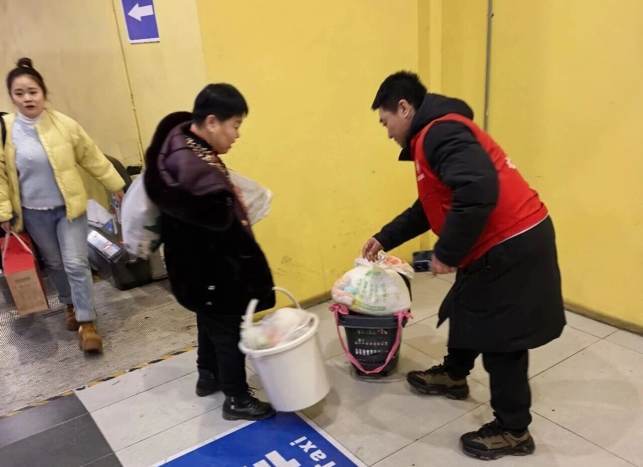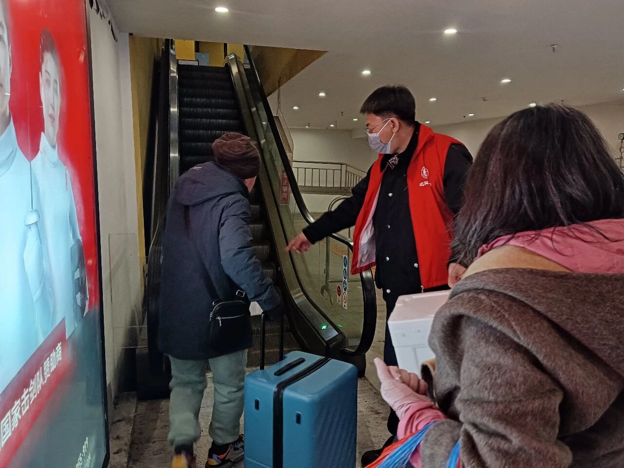 看到行動不便的老人,志愿者們會上前攙扶一把;遇到帶著孩子的母親,他們會幫忙提一提嬰兒車。那一抹抹流動的紅色,像是一根根針線,將秩序與溫情密密地縫進(jìn)了繁忙的春運畫卷中。