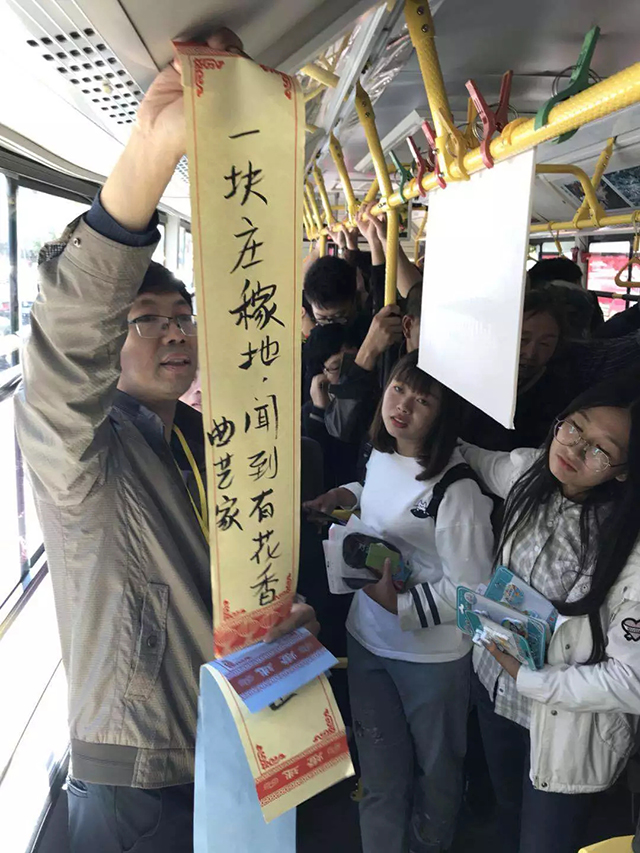 為了讓“藝公交”活動深入持久地開展下去,在中秋節(jié)放假第一天,和平區(qū)文聯(lián)、沈陽客運集團與沈陽藝海星辰有限公司聯(lián)合組織區(qū)民間文藝家協(xié)會、曲藝家協(xié)會的藝術(shù)家在藝公交上開展了有獎猜謎、快板表演、京歌演唱等活動,營造和諧愉悅的節(jié)日氛圍。