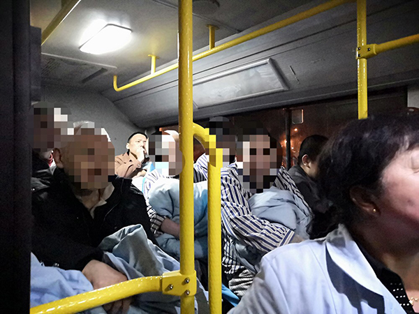 在預(yù)備車輛前往集結(jié)地點(diǎn)的途中,鑫暢公司384路車隊(duì)徐躍接到了位于線路附近沈陽靜安國際心理康復(fù)中心的求助電話,那里有醫(yī)患人員近160余人需要緊急撤離。集團(tuán)公司臨時(shí)指揮部立即下達(dá)384路車隊(duì)就地組織執(zhí)行疏散命令。384路車隊(duì)根據(jù)現(xiàn)場情況,留下五輛車執(zhí)行撤離輸送任務(wù),另外兩輛車前往集結(jié)點(diǎn)待命。