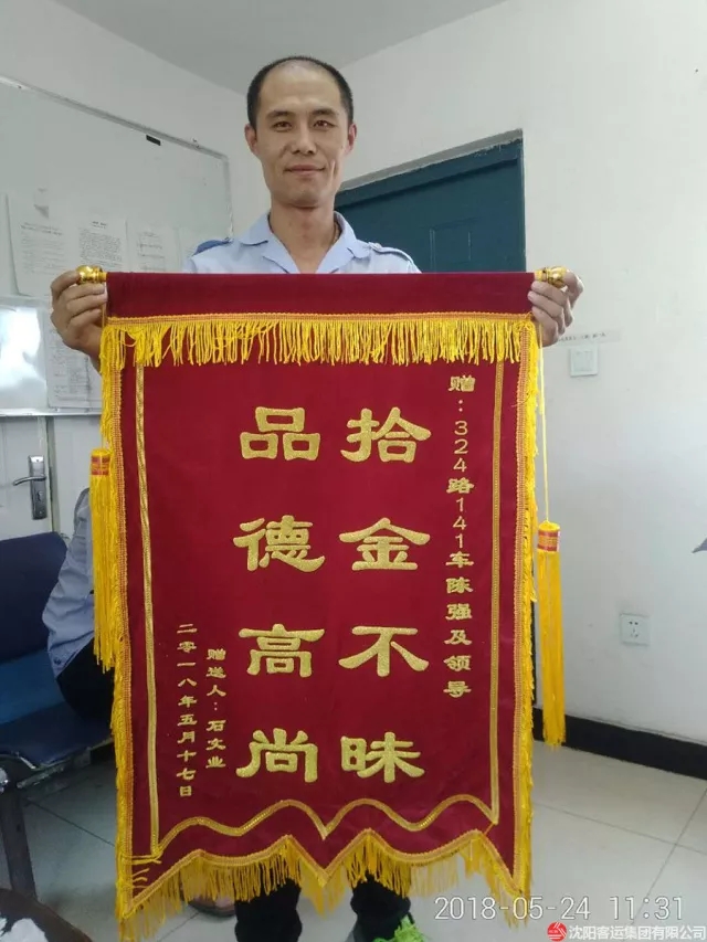 當(dāng)你發(fā)現(xiàn)路上有個(gè)錢(qián)包,你會(huì)怎么辦?是否會(huì)著急地想辦法聯(lián)系失主,還是事不關(guān)己高高掛起,又還是當(dāng)做一筆意外財(cái)?324路駕駛員陳強(qiáng)給出了自己的答案。5月4日,家住沈陽(yáng)的市民不慎丟失鑰匙門(mén)卡等物品,在他心急如焚時(shí),一個(gè)駕駛員的行為讓他至今都覺(jué)得心里暖暖的。當(dāng)天上午,陳強(qiáng)師傅一如既往地駕駛遼AJ1402公交車行駛在沈陽(yáng)的大街小巷,車輛到達(dá)終點(diǎn)后正準(zhǔn)備收拾車廂,發(fā)現(xiàn)有鑰匙門(mén)卡等物品遺落在座位上,陳強(qiáng)立即向車隊(duì)領(lǐng)導(dǎo)匯報(bào)此事,并交到車隊(duì)。等失主找到車隊(duì)時(shí),隊(duì)長(zhǎng)把物品歸還給失主,失主十分激動(dòng)當(dāng)時(shí)拿出現(xiàn)金表示感謝,但被陳強(qiáng)傅婉言拒絕,事后失主做了一面錦旗送到了車隊(duì)以表感謝。