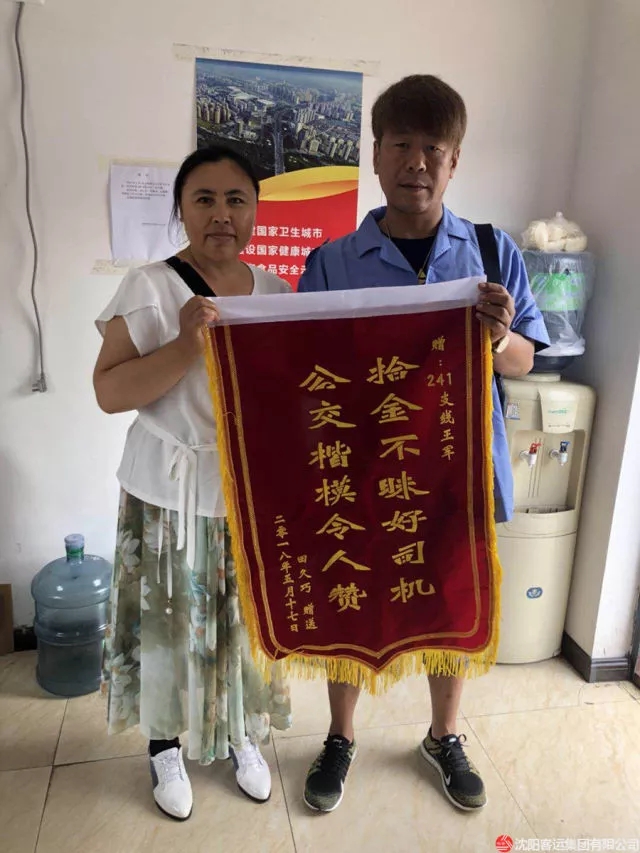 6月20日上午,乘客田久巧女士將一面錦旗送到康利公司241支線車隊,當面感謝好心駕駛員王軍。